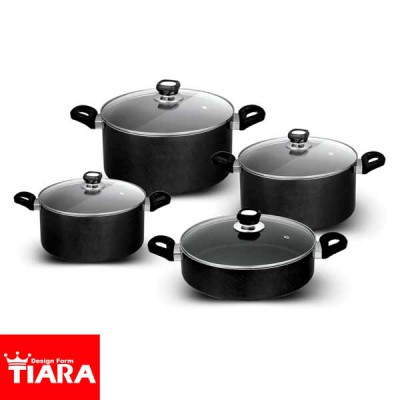- قابلمه شماره 1 به قطر 20cm, - قابلمه شماره 2 به قطر 24cm, - قابلمه شماره 3 به قطر 28cm, - تابه دو دسته به قطر 28cm